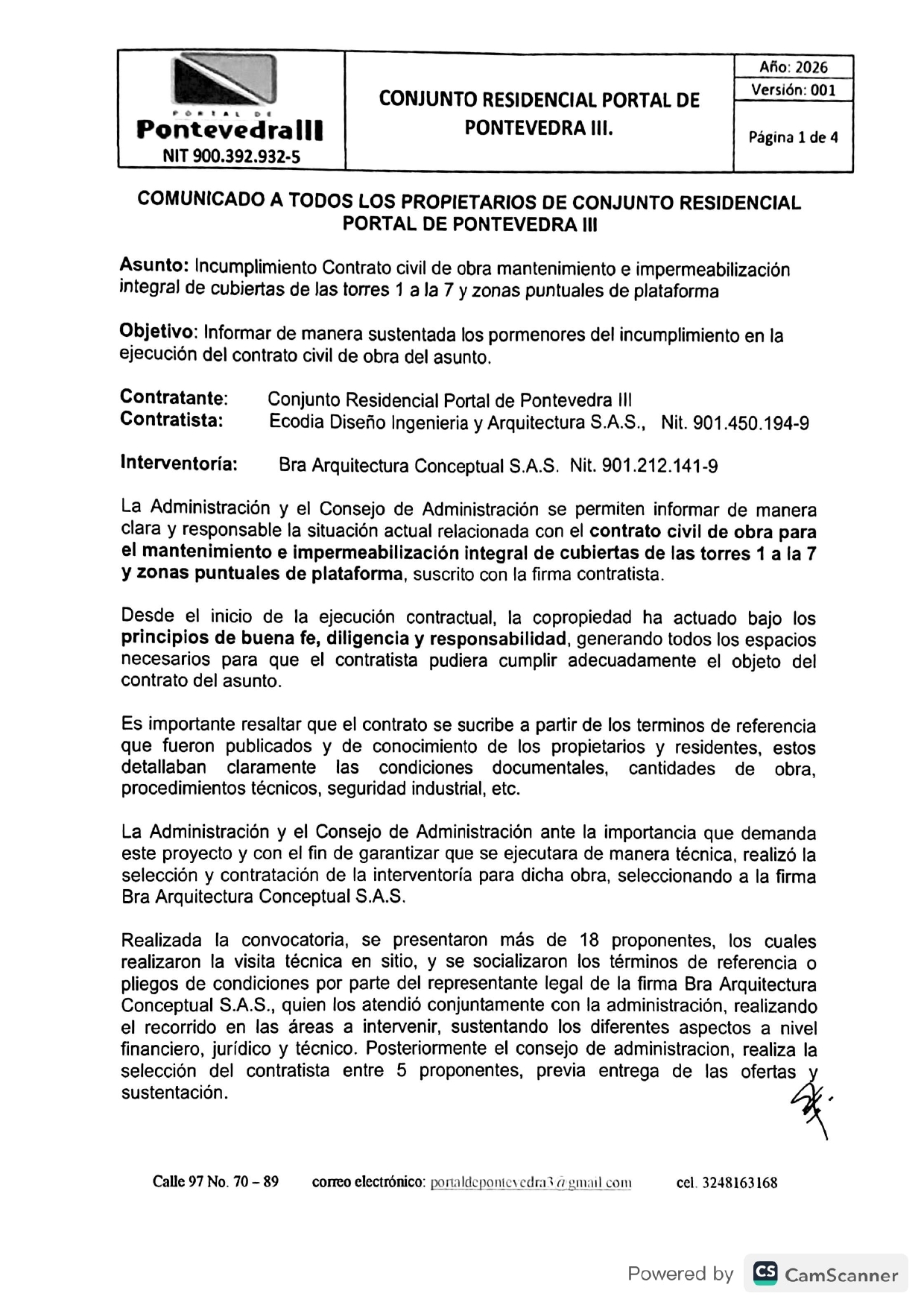 El propósito de este Manual es expresar en forma clara y sencilla las normas de convivencia, que deben aplicar los Residentes del Conjunto Residencial Portal de Pontevedra III P.H.